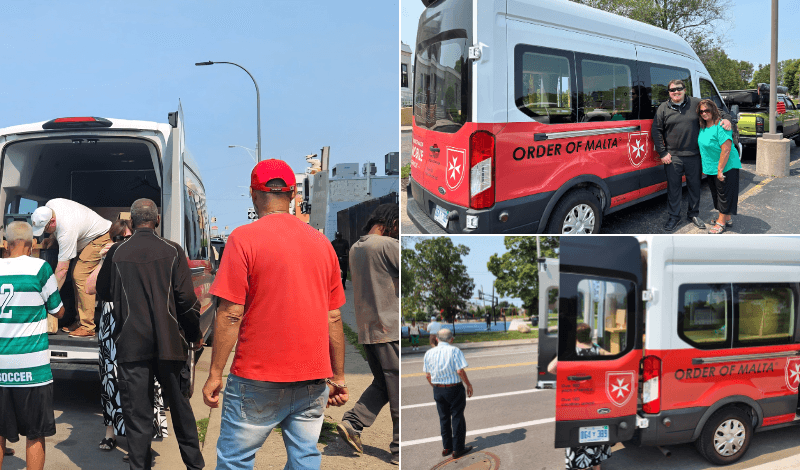 The Michigan Area’s “Into the Fire” ministry, organized by John Juriga, KM; and Sean Shriner, KM, serves Detroit’s homeless on the streets. With food and clothing donated by Michigan Area members and others, “Into the Fire” volunteers drive the Malta Mobile Ministries Van into Detroit’s poorest and most devastated areas, seeking those in need. In addition to performing these corporal works of mercy, the volunteers also pray with the people they meet, upon request.