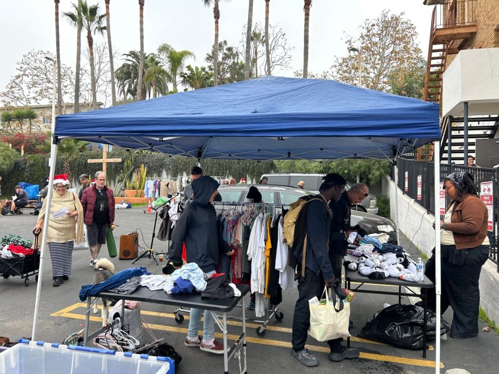 Order of Malta Mobile Ministries (https://maltamobileministries.org/) delivers fresh fruits and vegetables to LA Region’s neediest communities, and also delivers hygiene kits for the homeless assembled by LA Region volunteers. The weekend before Christmas, Mobile Ministries delivered hundreds of hygiene kits for the homeless to St. Robert’s Center in Venice (https://sp-apostle.org/st-roberts-center/). LA Region members and volunteers made sandwiches for homeless guests at St. Robert’s, and assisted in serving guests at the Saturday-morning St. Robert’s brunch program. Guests also enjoyed special services during brunch, including free haircuts, showers, clothing, local agency resources fair, and live acoustic music. Watch this short live music video and please support St. Robert’s Center during this Christmas season (https://catholiccharitiesla.org/our-lady-of-the-angels…/).